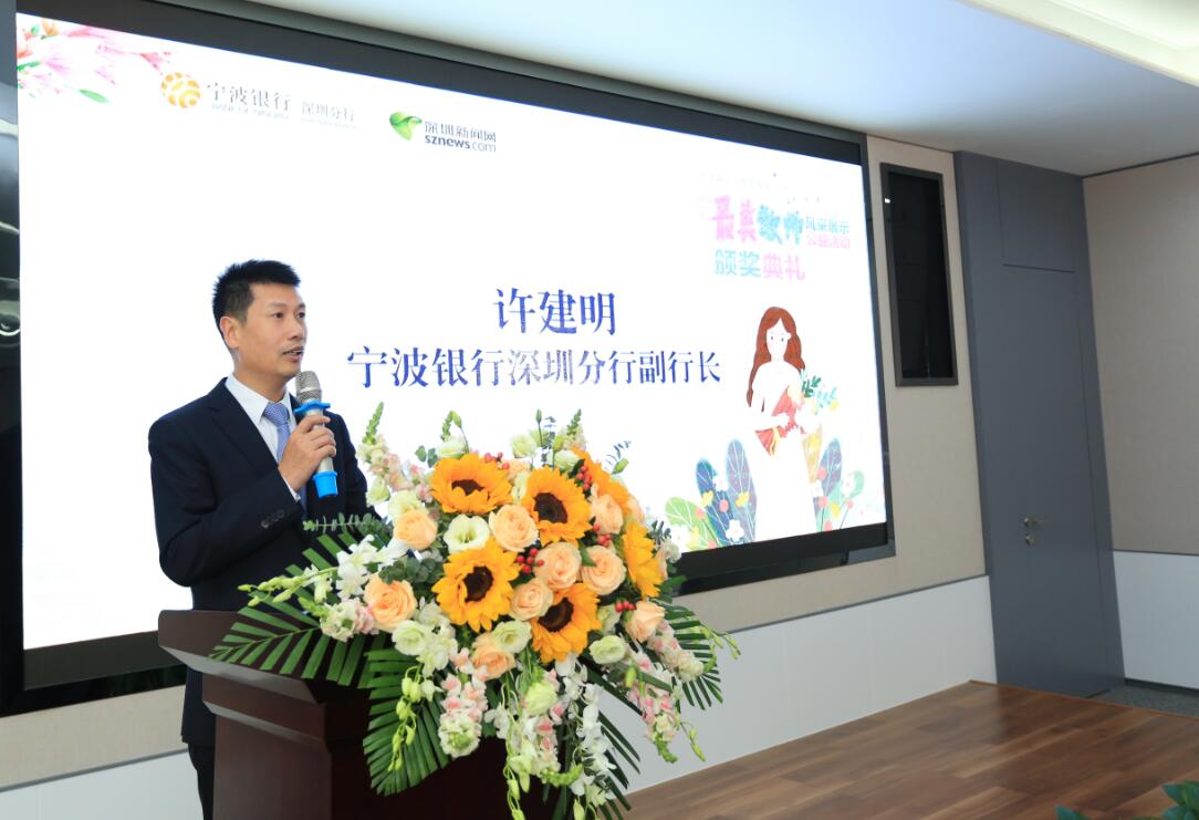 在頒獎儀式現(xiàn)場,寧波銀行深圳分行副行長許建明向全體教師致以節(jié)日的問候,他在致辭中表示:“寧波銀行扎根深圳十余載,在服務(wù)廣大深圳市民朋友的過程中,一直以教師群體的‘愛崗敬業(yè)、無私奉獻(xiàn)’精神作為自己的標(biāo)桿。”同時,許建明還表示,這次“鵬城最美教師”活動讓自己感觸良多,寧波銀行在以后工作過程中,會投入更多的精力去推進(jìn)惠民工程,開展更多的公益項目。