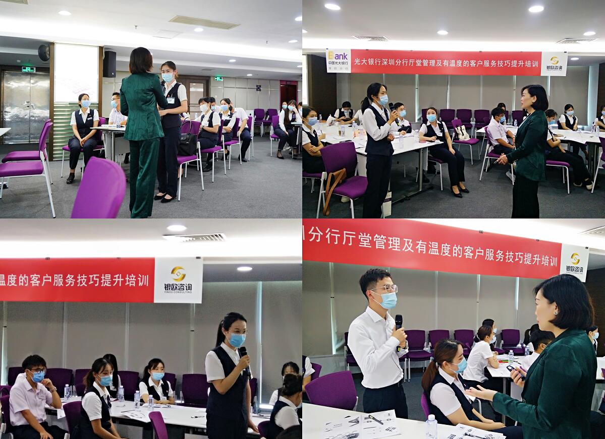 深圳新聞網(wǎng)·見圳客戶端2021年5月27日訊 今日,光大銀行深圳分行成功舉辦“廳堂管理及有溫度的客戶服務(wù)技巧提升”第一期專題培訓(xùn),各支行大堂經(jīng)理及大堂助理共50余人參加培訓(xùn)。培訓(xùn)強(qiáng)化了員工對(duì)大堂崗位的認(rèn)識(shí)和理解,進(jìn)一步提升了廳堂人員服務(wù)工作意識(shí)與質(zhì)量,是深圳分行陽(yáng)光服務(wù)工作邁入新階段的一個(gè)里程碑。