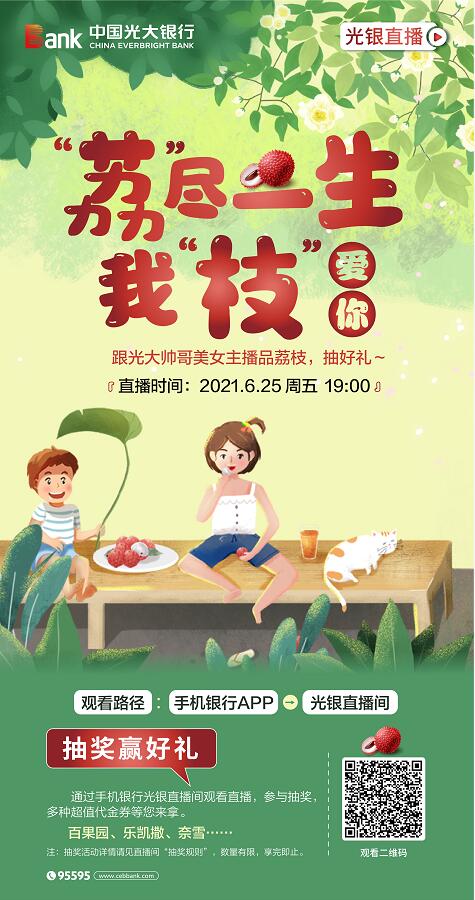深圳新聞網(wǎng)2021年6月25日訊(記者 朱琳)“日啖荔枝三百顆,不辭長作嶺南人”“一騎紅塵妃子笑,無人知是荔枝來”……時(shí)逢盛夏,又是品嘗荔枝的最佳時(shí)節(jié)。6月25日19時(shí),光大銀行深圳分行將通過手機(jī)銀行APP“光銀直播”共同開啟荔枝品嘗之“夜”,并送出精美大獎(jiǎng),愛吃荔枝的你一定不要錯(cuò)過。