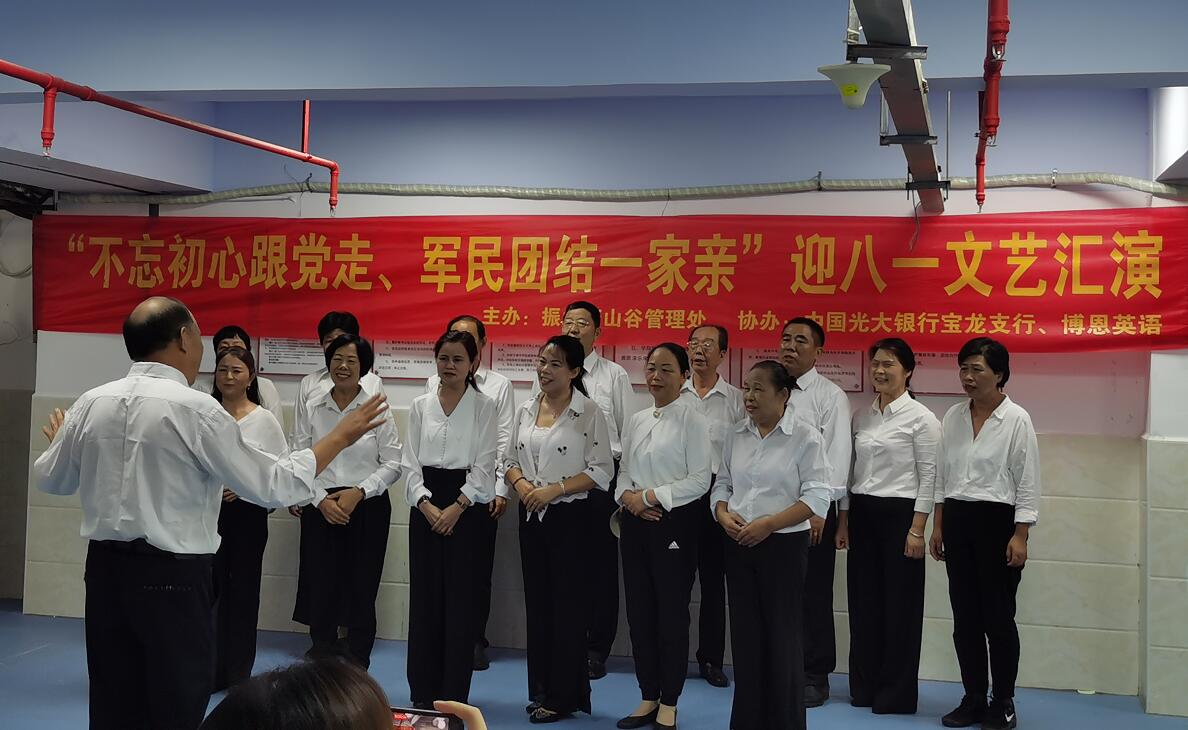 軍民魚水一家親,在光大銀行深圳分行的指導(dǎo)下,日前,不少支行結(jié)合實(shí)際情況開展了形式豐富多樣的活動(dòng)。如寶龍支行聯(lián)合振業(yè)欒山管理處舉行了“不忘初心跟黨走 軍民團(tuán)結(jié)一家親”八一文藝匯演?;顒?dòng)主辦方還特別邀請(qǐng)了部分退役老兵到場(chǎng),邀請(qǐng)書畫家題字“軍魂”送給退役老兵,送去了誠(chéng)摯的節(jié)日祝福。(樓蓉 沈婷)