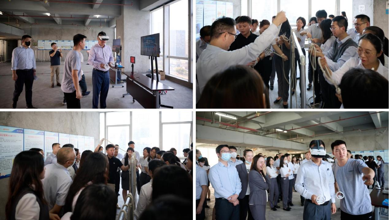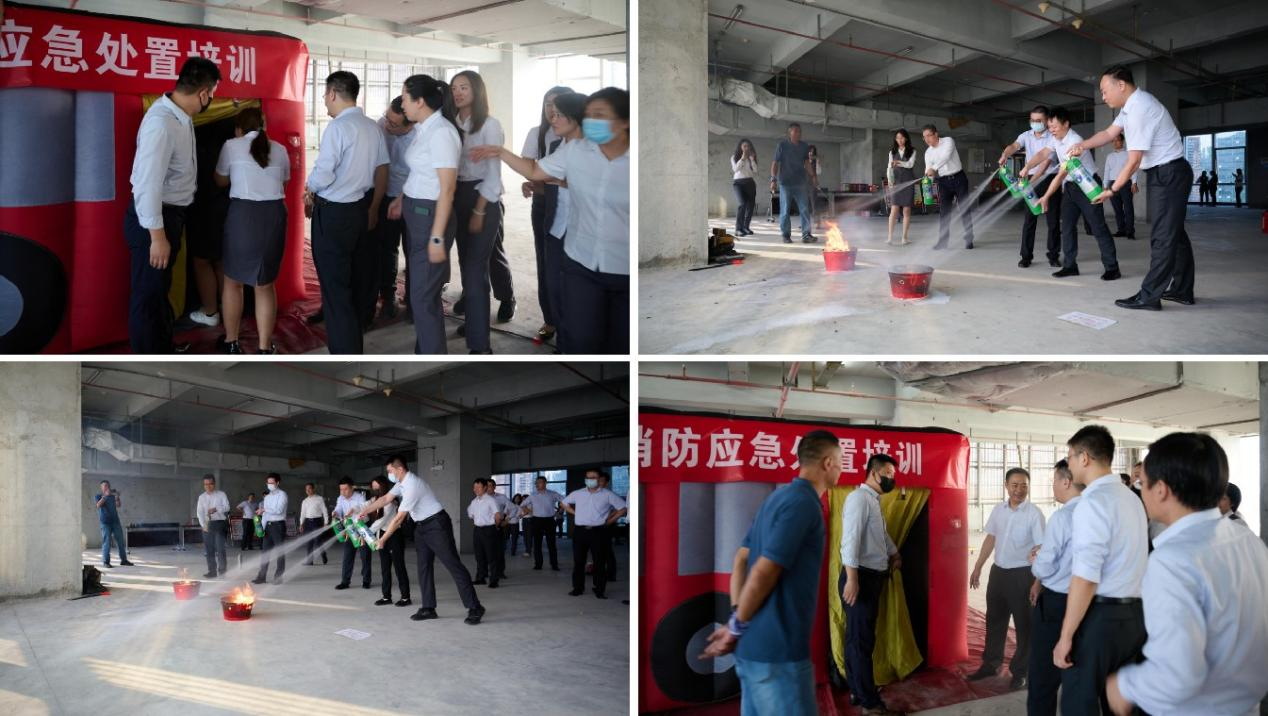 在完成避難集結(jié)后,廣發(fā)銀行深圳分行組織現(xiàn)場員工開展消防知識培訓。培訓主要采用理論知識與實踐操作相結(jié)合的模式,將活動現(xiàn)場劃分為VR虛擬安全場景、消防逃生繩結(jié)、消防安全逃生屋、滅火器材及防毒面具等體驗區(qū),每個區(qū)域均安排了專業(yè)講師講解相關(guān)知識,并協(xié)助員工操作和使用相關(guān)器材設備。員工們通過親身參與,學習了消防器材使用方法和高層火災逃生技能。