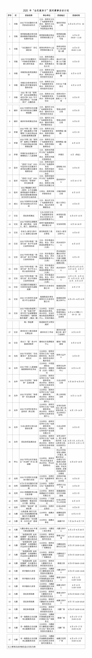 2025年8月8日是我國第17個(gè)“全民健身日”。今年,深圳迎來了第十五屆全國運(yùn)動(dòng)會(huì)和殘?zhí)貖W會(huì),為積極響應(yīng)“全民全運(yùn),全運(yùn)惠民”的理念,深圳在“全民健身日”期間精心組織了57項(xiàng)群眾喜聞樂見的賽事活動(dòng),涵蓋球類、徒步、騎行、水上等多個(gè)項(xiàng)目,139家體育場館面向市民免費(fèi)或優(yōu)惠開放,降低運(yùn)動(dòng)門檻,惠及更多市民。