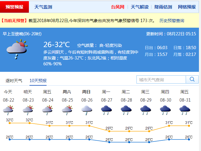 深圳新聞網(wǎng)訊 灰霾、陣雨齊上陣。多云仍是今日天氣的主格調,午后還會出現(xiàn)短時陣雨或雷雨。部分時間仍有輕度到中度灰霾,能見度下降至10公里以內。氣溫依舊較高,最低氣溫在26℃左右,最高氣溫升至32℃左右,市民應注意防暑降溫。