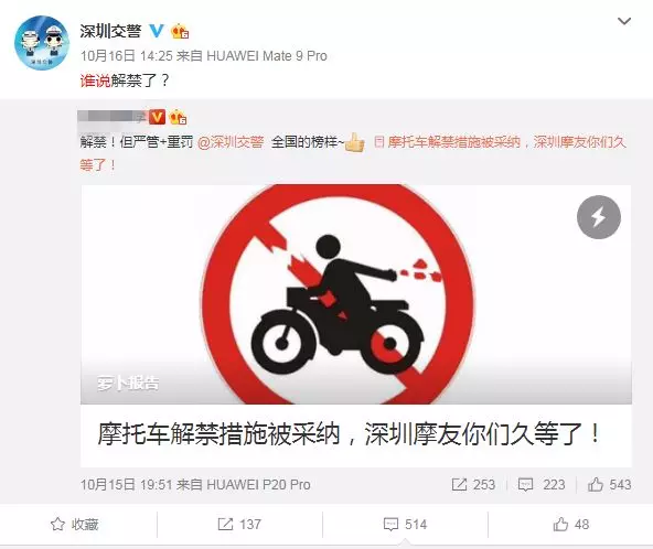 深圳從未如網(wǎng)上所說要對(duì)摩托車解禁,并將繼續(xù)實(shí)施禁摩管理政策。目前,對(duì)于在原關(guān)外部分交通不便的偏遠(yuǎn)地區(qū),為了市民出行的便利,是否適度放開“禁摩令”我們也在進(jìn)一步研究之中。同時(shí),市民可以在網(wǎng)上提出合理的管理建議和意見,為將來深汕合作區(qū)試點(diǎn)多元化管理建言獻(xiàn)策,現(xiàn)深圳暫不考慮解禁。