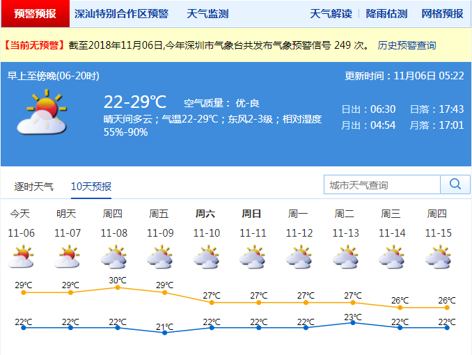 原標題:深圳氣溫回升 10 天內無法入秋 今日最高氣溫 29 ℃左右