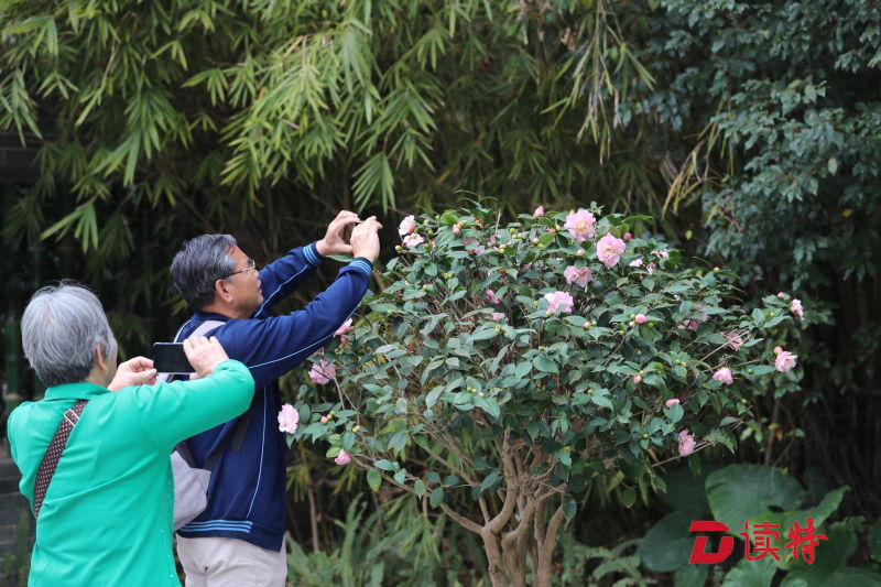 花卉館內(nèi)的室內(nèi)展區(qū)是此次茶花展的一大亮點。"佳境"、"夢境"、"意境"、"秘境"、"禪境"5個觀賞區(qū),營造出不同的茶花文化意境。其中"佳境"將擺放特色茶花盆栽,讓游人進入到茶花營造出的簡潔雅致的意境中;"夢境"利用"古樹"結(jié)合展示茶花插花藝術(shù),打造了夢幻的展示空間;"意境"以茶花切花花藝作品為主,結(jié)合茶花本身的特性與中式元素,展示意境唯美、充滿古韻的茶花插花作品。"我最喜歡‘秘境’,茶花盆景和山水盆景配上中式花幾和屏風,是濃縮的雅致山水呀。"63歲的孟先生由衷贊賞,"這是以情調(diào)韻味取勝,太美了?。⒍睦习閱贪⒁虅t最喜歡"禪境":"茶花盆景搭配中式鏤空屏風,簡直像一幅畫,水中還有倒影虛實結(jié)合,很有意境?。?/p>