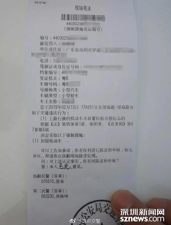 經(jīng)過調(diào)查,交警發(fā)現(xiàn)涉事車輛逾期未檢驗,目前深圳交警已將車輛暫扣。同時,針對其遮擋號牌的違法行為,深圳交警將對其處以罰款6000元、記12分、暫扣駕駛證6個月的處罰。 同時,將對舉報人獎勵2000元。