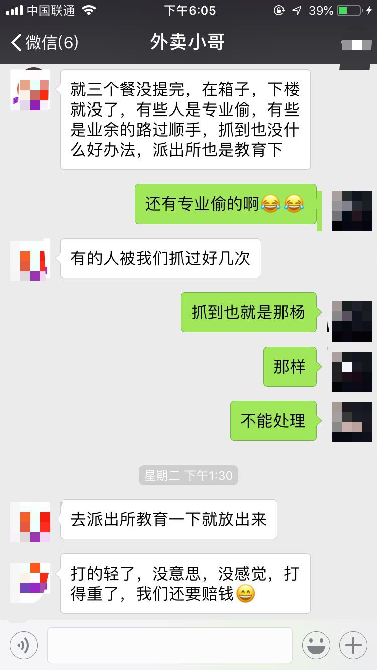 這是顏先生送外賣兩年多來第一次送餐被偷。他介紹,其他同事也遭遇過同樣的情況,有些人是專業(yè)偷,有些是路過順手牽羊。"有的人被我們抓到好幾次,但也沒辦法,我們不能打他。"顏先生介紹,由于被盜外賣價值不高,頂多200元,報警作用并不大,況且他們還要抽時間做筆錄,直接影響騎手們繼續(xù)送單,所以大家報警意愿并不強(qiáng)烈。