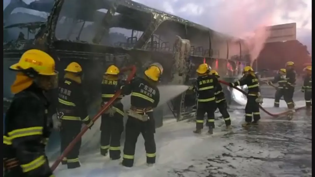 通過泡沫滅火劑覆蓋的方式,火勢(shì)最終得到控制,但整個(gè)大巴也被燒的只剩下框架。車上的兩名司機(jī)介紹,他們從桂林發(fā)車來(lái)到深圳,因?yàn)閯倓傇诟浇囌鞠驴?,車上并無(wú)乘客。而起火原因兩人也并不清楚。