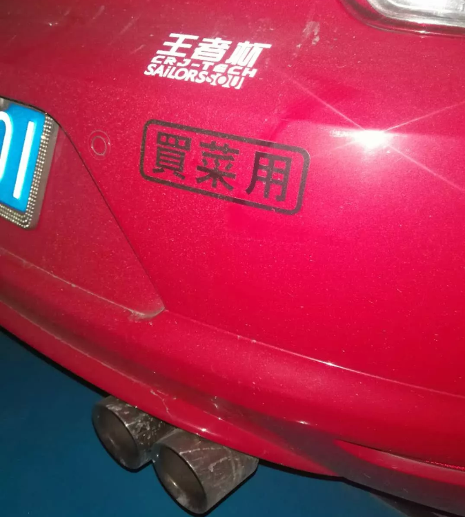 從圖中可以看出,上午還好好的一輛車,到了下午,車身下就多了幾個(gè)“本不該出現(xiàn)”的東西。再仔細(xì)一看,車身上還貼著“買菜用”字樣。
