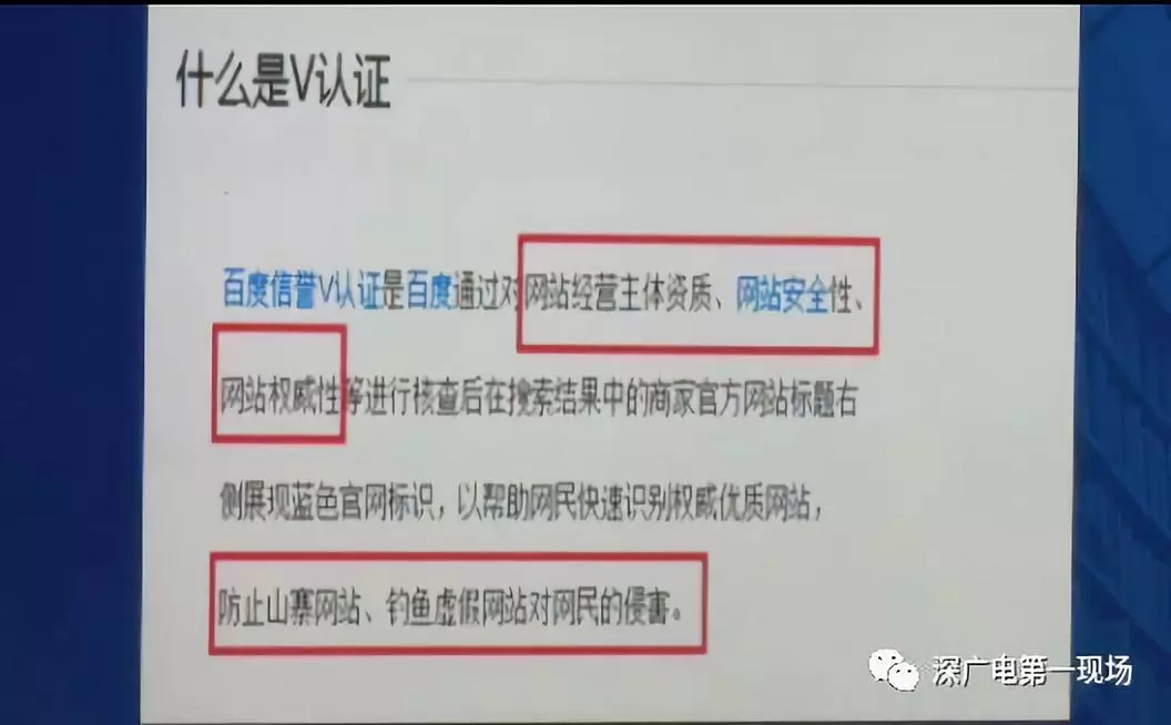 第一,百度V認證是對保障網(wǎng)站的權威性等而進行的認證,百度V1認證的含義是“基礎信譽積累,可放心訪問”,百度V認證是用怎樣的核查規(guī)則?讓消費者“可放心訪問”的?
