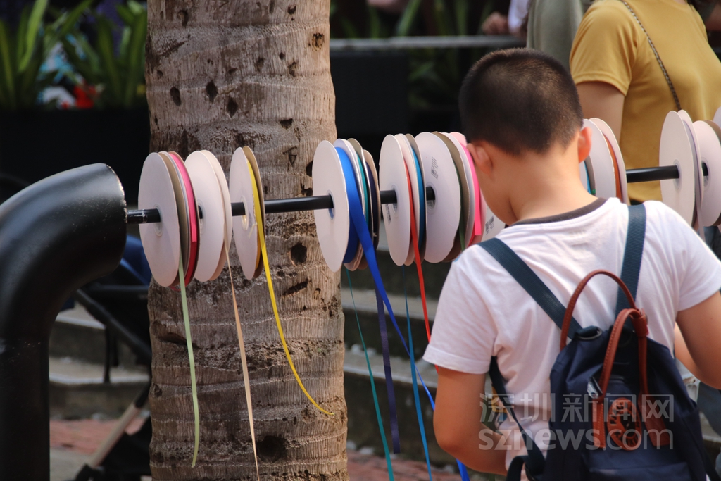 現(xiàn)場(chǎng)提供各種顏色的彩帶,供公眾選擇并纏繞到汽車上