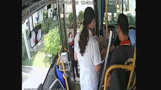 從現(xiàn)場的監(jiān)控視頻可以清楚地看到,犬主楊先生牽著寵物狗從傅女士和孩子之間穿過。