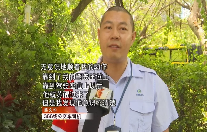 監(jiān)控顯示:6月8日中午12點27分左右,司機熊師傅正常駕駛車輛,這時身旁的一名穿黑色上衣的男乘客突然跌倒在地。熊師傅發(fā)現(xiàn)后,急忙將車輛行駛到安全地帶停放,并向男乘客詢問情況。