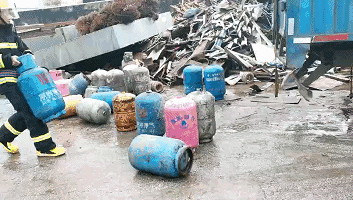 現(xiàn)場(chǎng)消防員還搶出煤氣瓶,記者現(xiàn)場(chǎng)聞到煤氣的味道,據(jù)了解,有些煤氣瓶還有氣,危險(xiǎn)程度可想而知▼