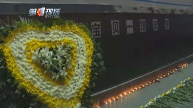 在廣場正中央,放立著一個心形花牌,大家在地上點(diǎn)上了蠟燭,墻面貼著“寶貝一路走好”。