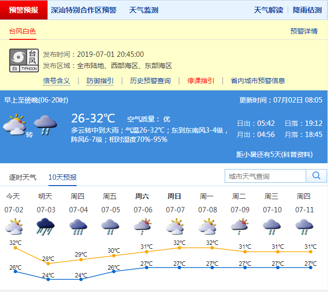 深圳新聞網(wǎng)2019年07月02日訊 深圳市氣象臺已于昨日20時(shí)45分發(fā)布臺風(fēng)白色預(yù)警信號,預(yù)計(jì)其將可能在48小時(shí)內(nèi)影響我市,全市進(jìn)入臺風(fēng)注意狀態(tài)。氣象臺預(yù)計(jì),今日白天深圳風(fēng)力逐漸加大,最大陣風(fēng)7級左右,午后降雨漸趨頻密,局部大雨,夜間降雨加大,有大雨到暴雨,局部大暴雨,請做好防范準(zhǔn)備!