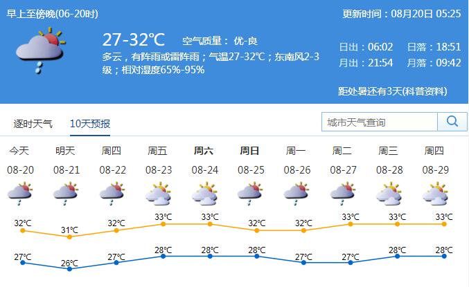 見圳客戶端·深圳新聞網2019年8月20日訊 近幾日,深圳天氣不穩(wěn)定,午后降雨多發(fā)。接下來天氣如何?預計未來兩天多陣雨天氣,提醒市民出行攜帶雨具,并做好防暑降溫措施。