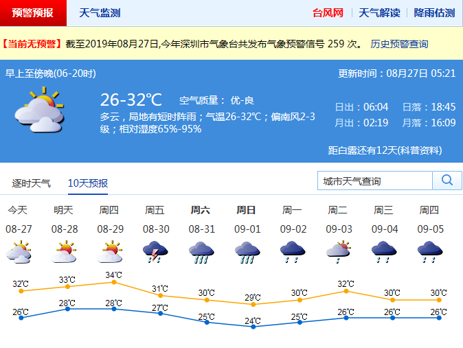 未來三四天 深圳悶熱有陣雨 但周末開始又有一次風(fēng)雨過程