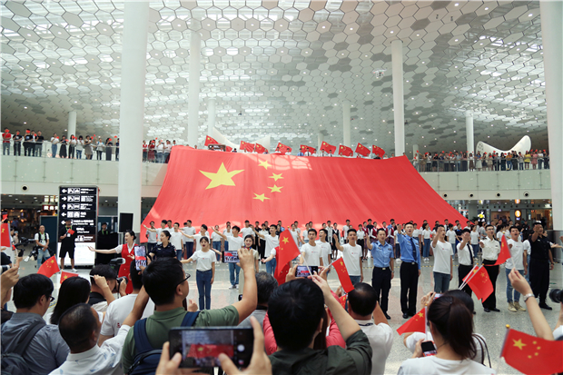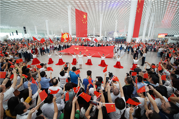 機(jī)場(chǎng)航站樓成“紅色海洋” 他們以這種方式慶祝新中國(guó)成立70周年