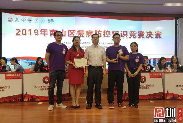 見圳客戶端·深圳新聞網(wǎng)2019年9月23日訊(見圳客戶端、深圳新聞網(wǎng)記者 劉夢婷 通訊員 張媞)日前,一場“非專業(yè)”健康知識競賽進入決賽,參賽8支隊伍均來自非醫(yī)療衛(wèi)生專業(yè)人群。經(jīng)過激烈角逐,2019年南山區(qū)慢病防控知識競賽圓滿落幕,西麗街道總工會代表隊奪冠。