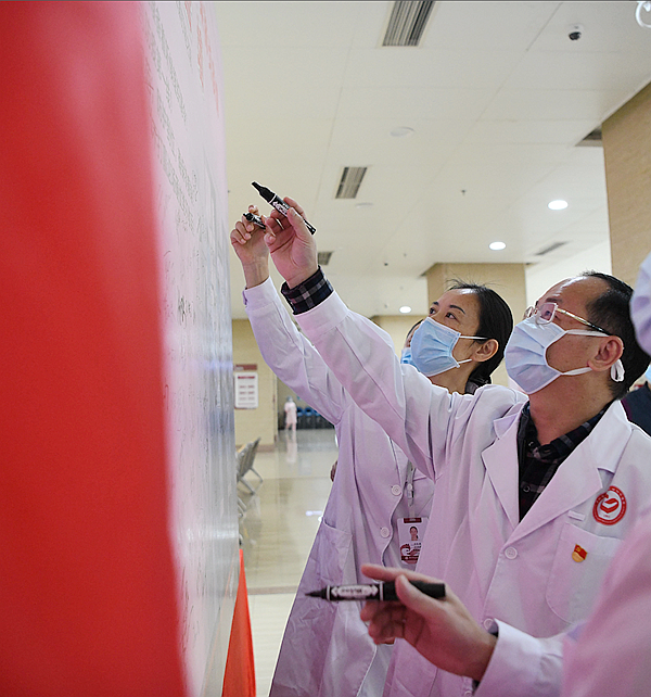在整個(gè)疫情阻擊戰(zhàn)中,龍崗區(qū)婦幼保健院黨組織自始至終都發(fā)揮著不可替代的先鋒模范作用,在疫情剛開(kāi)始的時(shí)候,以曹樂(lè)勝院長(zhǎng)為首的醫(yī)院黨委就身先士卒緊急行動(dòng)起來(lái)迅速投入到抗病毒戰(zhàn)斗中去。院黨委發(fā)出了通知,號(hào)召?gòu)V大員工積極行動(dòng)起來(lái),投身疫情防控第一線(xiàn),全院人員迅速響應(yīng),截止2月3日,報(bào)名人數(shù)達(dá)369人,其中黨員112人。醫(yī)院組織了部分代表參加的宣誓儀式,大家激情滿(mǎn)懷地舉起右手,莊嚴(yán)承諾:我將堅(jiān)守初心,勇?lián)姑?;無(wú)條件服從大局,時(shí)刻準(zhǔn)備著聽(tīng)候組織調(diào)令;立志沖鋒在前,誓到防疫第一線(xiàn);我必履職盡責(zé),嚴(yán)守規(guī)范,防護(hù)到位,確保零感染;保證與病毒戰(zhàn)斗到底,不打贏這場(chǎng)硬仗絕不收兵。
