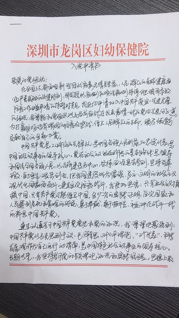 疫情來(lái)時(shí),龍崗區(qū)婦幼保健院一醫(yī)生志愿加入中國(guó)共產(chǎn)黨