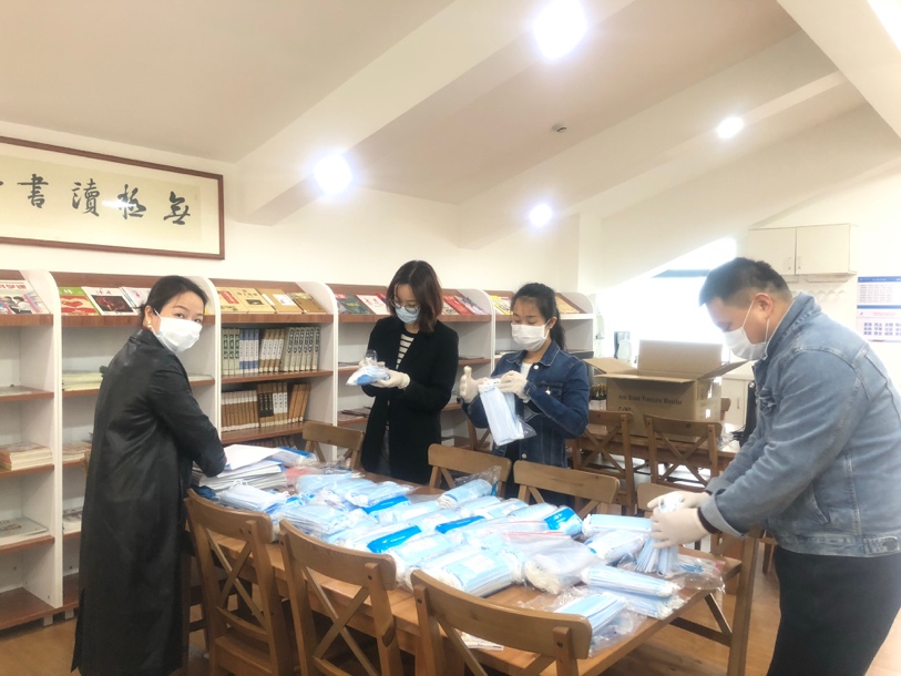 這一次,節(jié)日,校工會一致建議為繼續(xù)做好后續(xù)的“空中教學”,讓老師確保健康,為他們一并寄上一套口罩。疫情面前,口罩遮住了他們的面龐,卻遮不住眼中溫暖的笑意;手套隔離了病毒的威脅,卻不會將心靈間傳遞的溫情隔斷。