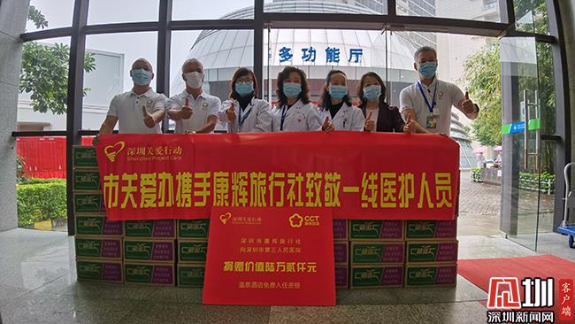 為表達(dá)對(duì)醫(yī)護(hù)人員的感謝,深圳市康輝旅行社捐贈(zèng)價(jià)值6.2萬(wàn)元的廣東省內(nèi)溫泉酒店免費(fèi)入住券40張。每張入住券可在廣東省內(nèi)指定酒店入住雙床房或大床房?!耙咔槠陂g,我們康輝人一直都在為抗擊疫情獻(xiàn)綿薄之力?!鄙钲谑锌递x旅行社有限公司董事總經(jīng)理滿炎權(quán)告訴記者,在疫情前期,全國(guó)各地醫(yī)用物資告急。各地康輝分公司迅速自我組織、自籌資金,聯(lián)系在國(guó)外的康輝旅行社的領(lǐng)隊(duì)及導(dǎo)游購(gòu)買(mǎi)大量醫(yī)療物資回國(guó)?!艾F(xiàn)在國(guó)內(nèi)醫(yī)療物資暫時(shí)不缺了,我們深圳康輝送給三院的醫(yī)護(hù)人員溫泉酒店入住券,希望他們?cè)谝咔榻Y(jié)束后,能好好休息?!?/p>