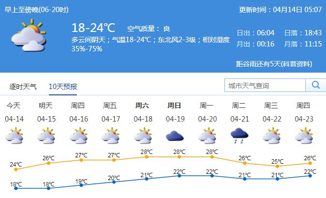 15-17日晴天到多云,氣溫逐日回升,天氣漸趨暖濕。18-19日云量增多,間中有分散陣雨。展望未來一周,相對(duì)濕度會(huì)逐日升高,天氣逐漸轉(zhuǎn)為暖濕的多云天氣。