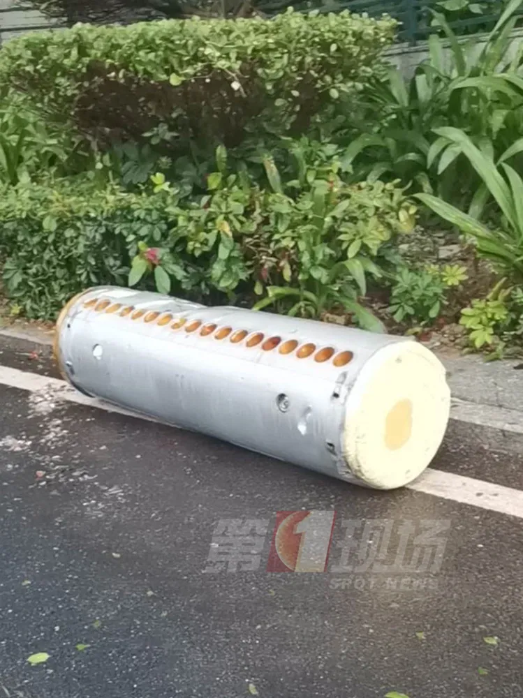 ▲掉落的太陽能熱水器儲(chǔ)水箱