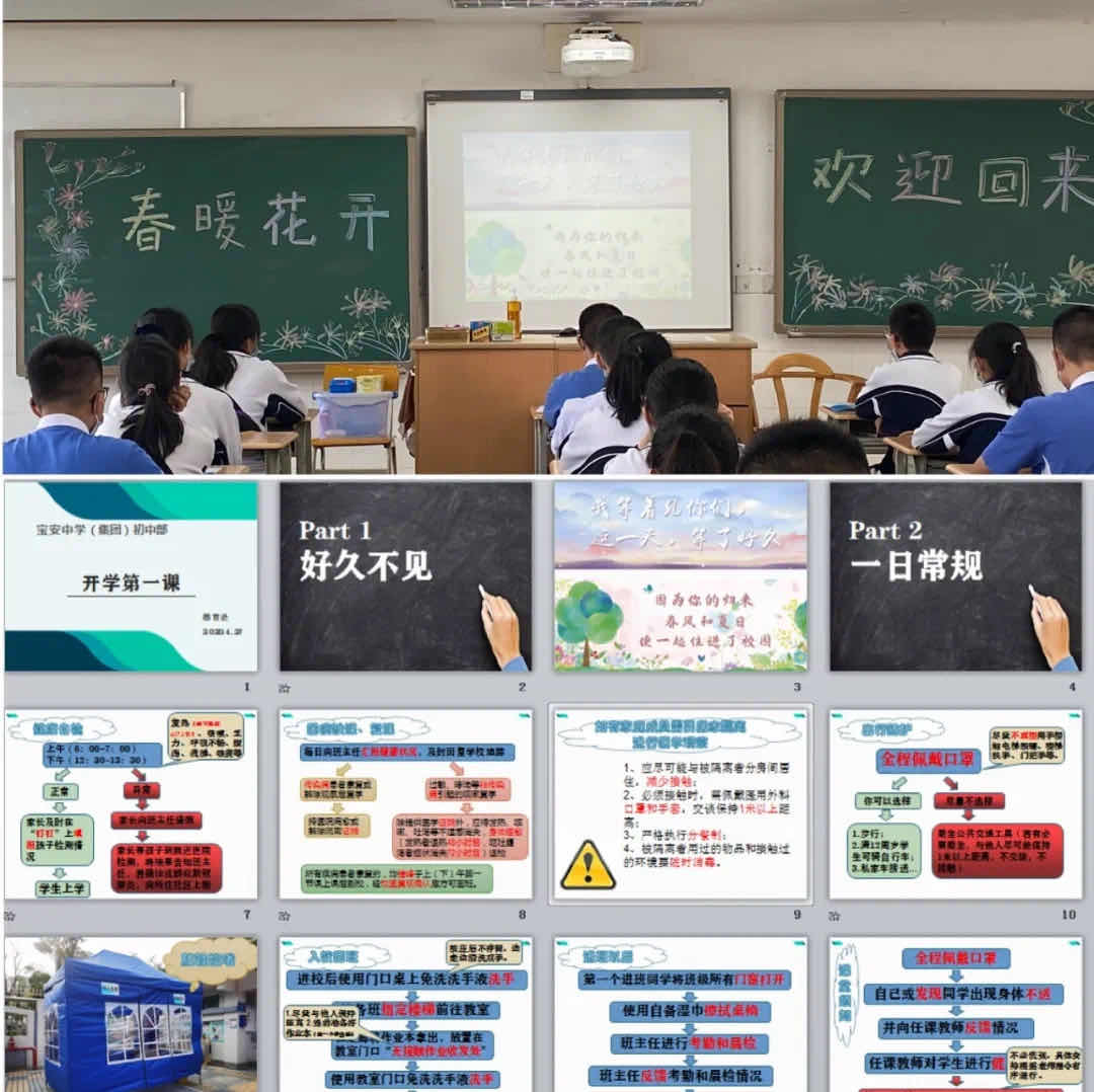 學(xué)校在校門外設(shè)立進(jìn)入通道,讓學(xué)生按照提前設(shè)置好的路線指引, 分批分流 進(jìn)入校園。學(xué)校課室的課桌擺放呈“一人一桌”制,樓道貼上站位地標(biāo),充分拉開(kāi)學(xué)生安全間距離, 少交談少聚集 。除此之外,學(xué)校通過(guò)取消課間操、眼操等方式壓縮課間,實(shí)現(xiàn) 錯(cuò)峰放學(xué) 。各班門前設(shè)置無(wú)接觸交作業(yè)區(qū),放置免洗洗手液,另外還特地為學(xué)生發(fā)放常規(guī)指引小冊(cè)子,制作了《寶安中學(xué)(集團(tuán))2020年春季學(xué)期返校復(fù)學(xué)指引》手繪視頻,開(kāi)設(shè)了以防疫為主要內(nèi)容的“開(kāi)學(xué)第一課”,讓防疫知識(shí) 入耳入腦入心 。