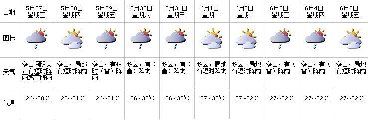 15時(shí)43分:【深圳市天氣提示】未來(lái)一周陽(yáng)光陣雨相伴:27-31日多云,可見(jiàn)陽(yáng)光,間中有(雷)陣雨,天氣日趨悶熱,27日氣溫26-30℃;展望6月1-2日多云,局地有短時(shí)陣雨。近期降雨頻繁,請(qǐng)繼續(xù)做好地面塌陷、滑坡等地質(zhì)災(zāi)害的防范。