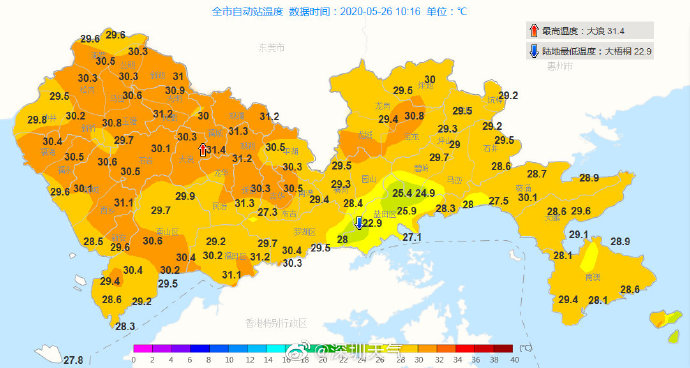 17時(shí)55分:深圳市氣象臺(tái)于2020年05月26日17時(shí)55分在寶安區(qū),南山區(qū)和西部海區(qū)發(fā)布大風(fēng)藍(lán)色預(yù)警,預(yù)計(jì)上述地區(qū)陣風(fēng)8級(jí)以上,信號(hào)將持續(xù)1-2個(gè)小時(shí),做好防風(fēng)準(zhǔn)備,落實(shí)各項(xiàng)防風(fēng)措施,請(qǐng)市民遠(yuǎn)離海邊,盡量避免海上活動(dòng)。