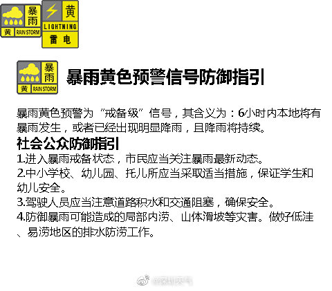 13時(shí)00分:【深圳市暴雨黃色預(yù)警】預(yù)計(jì)全市1-2小時(shí)內(nèi)降雨加強(qiáng),將出現(xiàn)20-30毫米降水,深圳市氣象臺(tái)于2020年05月26日13時(shí)00分在全市發(fā)布暴雨黃色預(yù)警,全市進(jìn)入暴雨戒備狀態(tài),請(qǐng)注意防范。