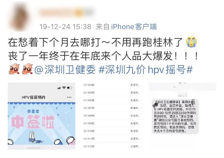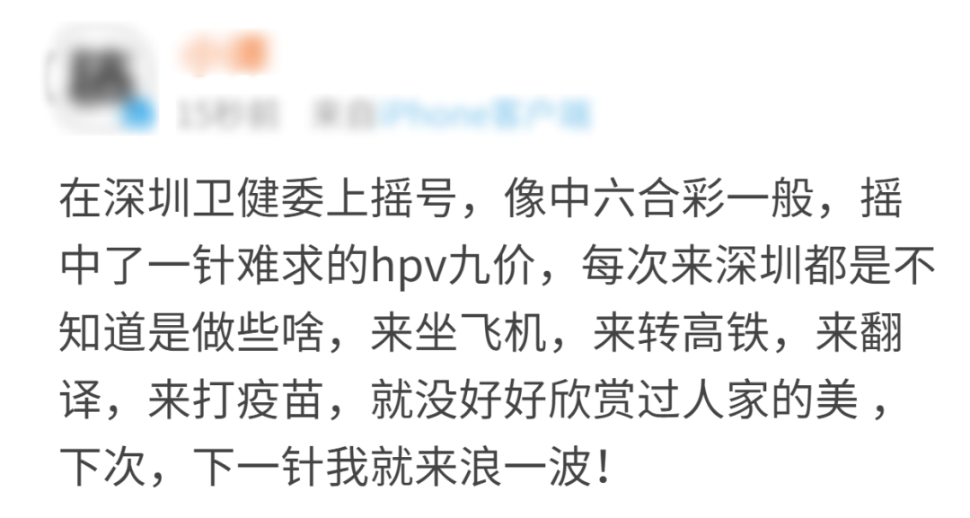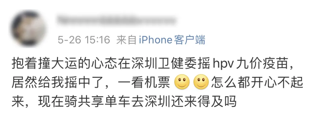 “嗚嗚嗚……簡(jiǎn)直不敢相信我的眼睛,前段時(shí)間連口罩都抽不中的我,竟然抽中了九價(jià)HPV疫苗”。