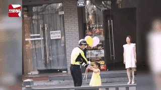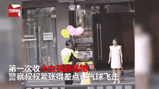 浙江交警叔叔在路邊收到小女孩送的氣球后,也暖了一路。
