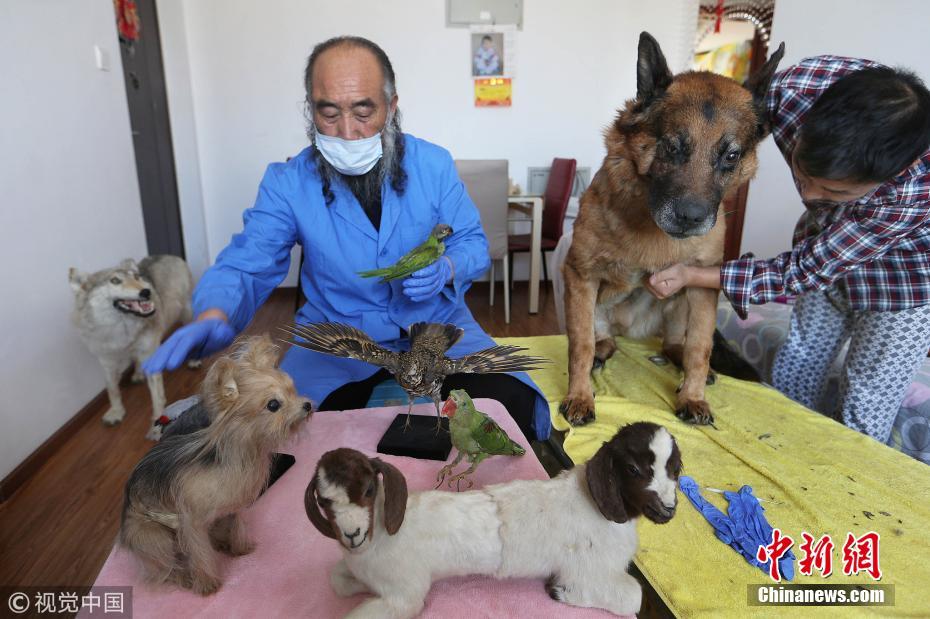 狗年到來(lái),來(lái)找他將離世的愛犬和其他寵物做成標(biāo)本的人絡(luò)繹不絕,動(dòng)物們就這樣老郭手中復(fù)生。據(jù)老郭介紹,進(jìn)入狗年,他接到了幾位主人送來(lái)的三只過(guò)世狗狗來(lái)做標(biāo)本。從20歲出頭開始制作第一只貓頭鷹標(biāo)本以來(lái),在老郭手下復(fù)生的動(dòng)物大到汗血賽馬、獅子、野豬,小到蜂鳥,近些年僅制作賽馬標(biāo)本就有50匹,其它的寵物標(biāo)本有數(shù)千余件。文字來(lái)源:法制晚報(bào) 圖片來(lái)源:視覺中國(guó)