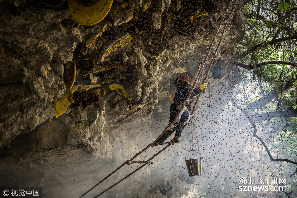 ?“最難采摘的崖蜜,是凹進懸崖內側3至5米的那種?!眱赡陙?,小蕊親自跟采了十幾趟蜜,最怕遇到凹陷的蜜源。