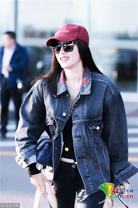 2018年10月24日,北京,“富察皇后”秦嵐現(xiàn)身機(jī)場(chǎng)。她頭戴小紅帽,身穿黑色緊身褲顯美腿筆直修長(zhǎng),上身穿著牛仔外套青春逼人,邊走邊甜笑玩“撩發(fā)殺”,靚麗吸睛。