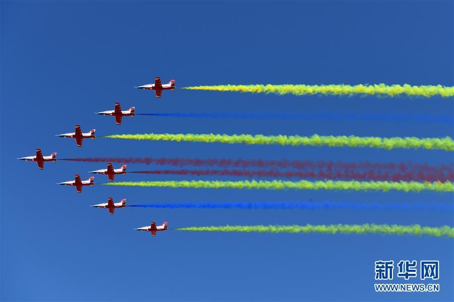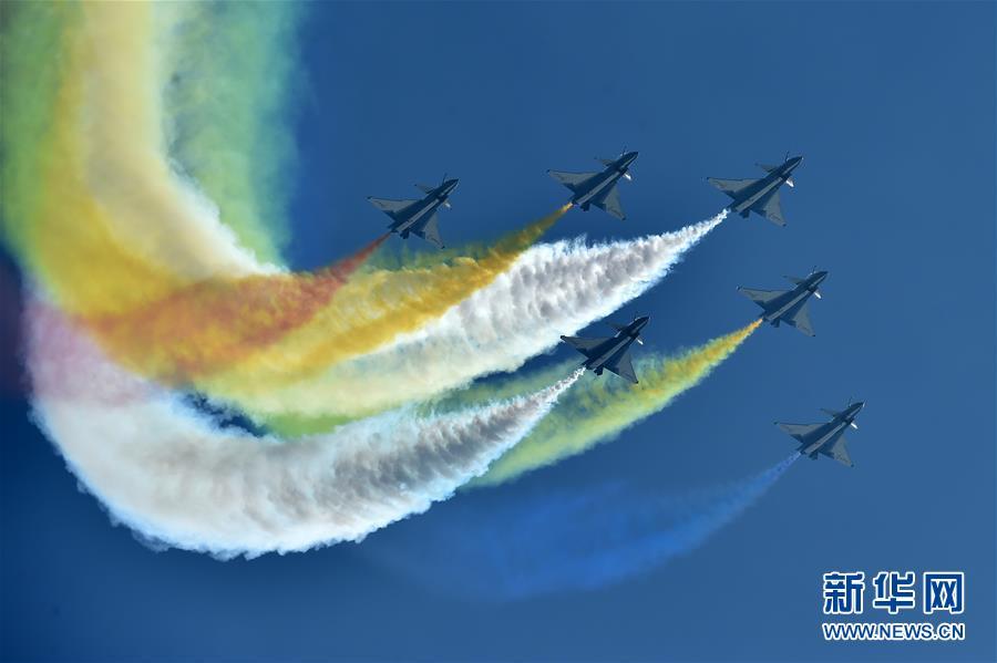 11月6日,中國空軍八一飛行表演隊在航展現(xiàn)場進行飛行表演。當日,第十二屆中國國際航空航天博覽會在珠海開幕。新華社記者鄧華攝
