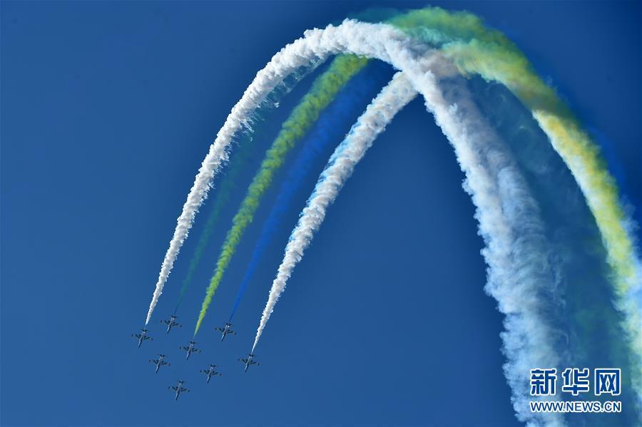 11月6日,中國空軍八一飛行表演隊在航展現(xiàn)場進行飛行表演。當日,第十二屆中國國際航空航天博覽會在珠海開幕。新華社記者梁旭攝