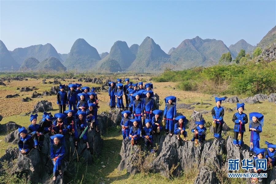 廣西百色靖西市安德鎮(zhèn)中心小學的孩子們在排練山歌(11月28日無人機拍攝)。 新華社記者 周華攝