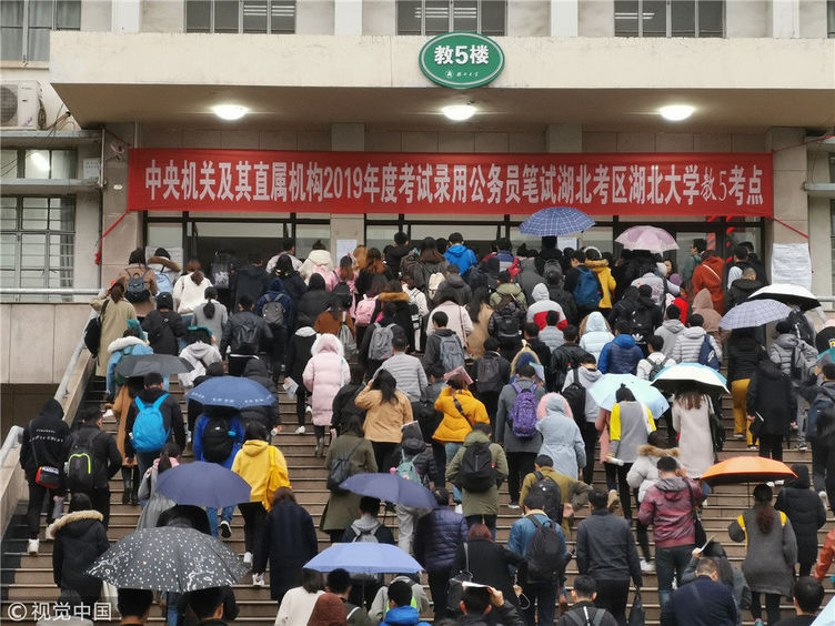 2018年12月2日,湖北武漢一公務(wù)員考點,密密麻麻的考生進向考場。當(dāng)日,2019年度中央機關(guān)及其直屬機構(gòu)公務(wù)員招考筆試開考。楚林/視覺中國