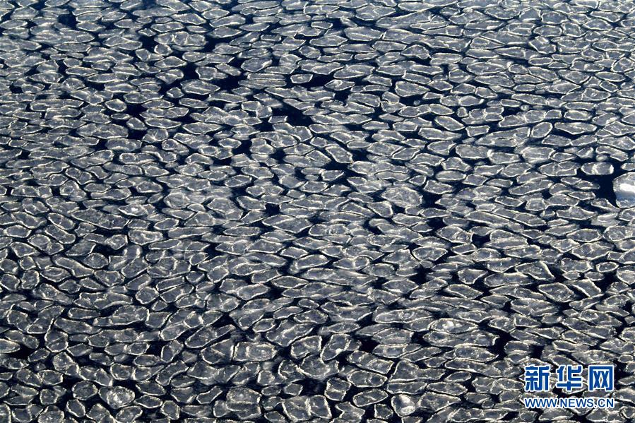這是11月30日拍攝的普里茲灣海域的荷葉冰。  新華社記者 劉詩平 攝