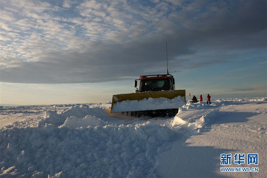 修路小組成員用雪地車裝備的鏟斗推平積雪(12月1日攝)。 搭載中國第35次南極科考隊(duì)的“雪龍”號極地考察船日前到達(dá)距離中山站44公里處的陸緣冰區(qū),準(zhǔn)備迎來本次南極科考首場攻堅(jiān)戰(zhàn)——物資卸運(yùn)。一支探冰小組隨即展開海冰探路,以期盡快打通從“雪龍”號到中山站的冰上運(yùn)輸線,盡早啟動冰上運(yùn)貨。 新華社記者 劉詩平 攝