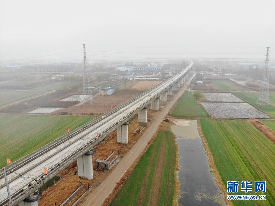 12月2日拍攝的魯南高鐵山東臨沂段(無人機(jī)拍攝)。 新華社記者 邢廣利攝