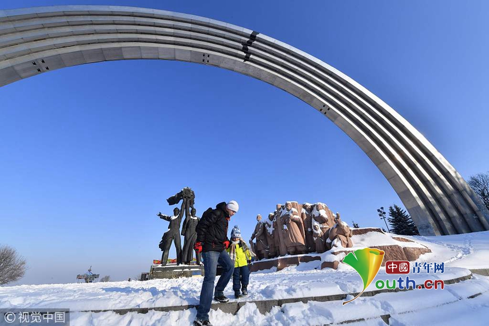 蘇聯(lián)時(shí)期象征著烏克蘭和俄羅斯友誼拱形建筑被不知名藝術(shù)家添加了一道裂縫