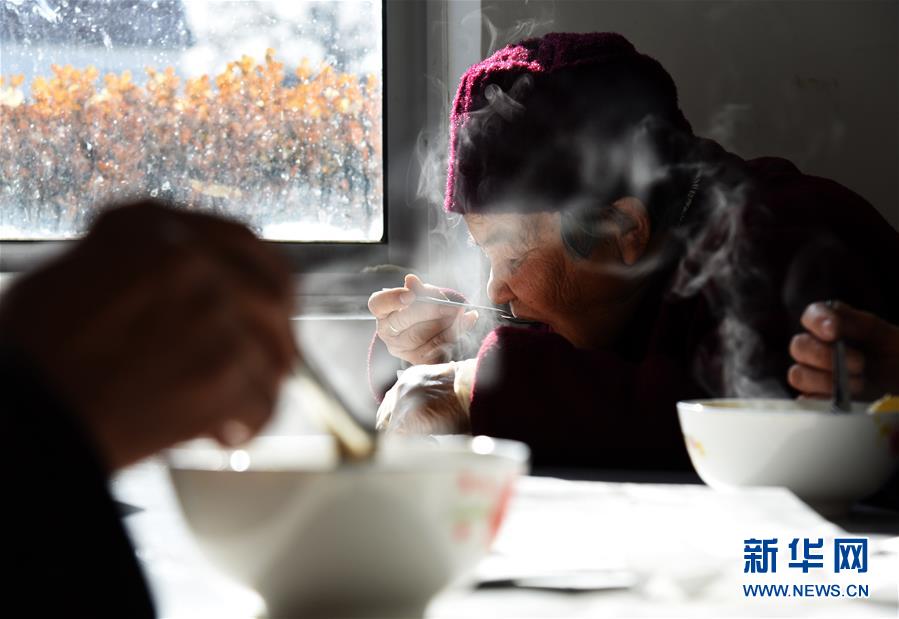 1月15日,村里的老人在“一元餐廳”內(nèi)吃午飯。新華社記者王凱攝