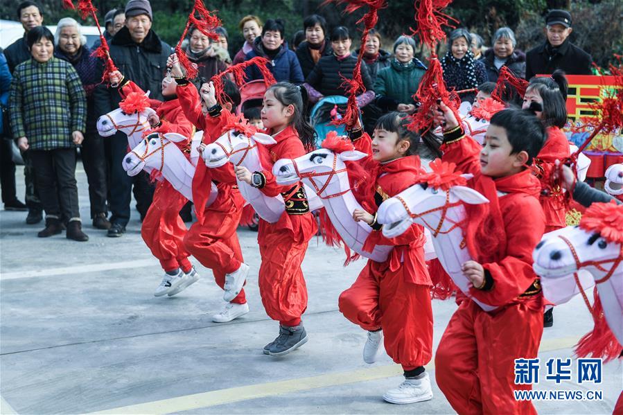 1月16日,新塘村村民觀看傳統(tǒng)非遺項目——下箬馬燈。下箬馬燈是發(fā)源于長興縣的民間舞蹈,距今已有1000多年歷史。 臨近春節(jié),浙江省長興縣開發(fā)區(qū)中心幼兒園的老師和孩子們來到長興縣太湖街道下屬的新塘村,為村民表演文藝節(jié)目,用喜慶的傳統(tǒng)舞蹈營造節(jié)日氣氛。另外孩子們還用紙盒、瓶子、彩色包裝紙等廢舊物品制作了環(huán)?;簦徒o村民,倡導低碳環(huán)保的節(jié)日新風。 新華社記者 徐昱 攝